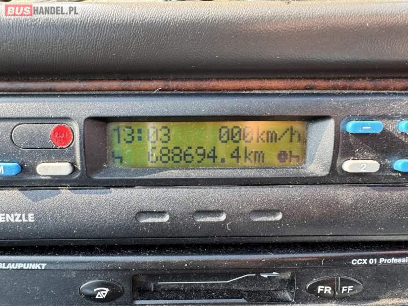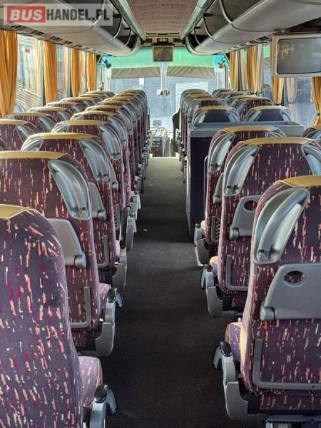 Wyposażenie: WC, lodówka, fotele odchylane, nawiewy dyszowe, ABS, ASR, tempomat, retarder, CD, podnóżki, mikrofon, klimatyzacja, radio, regulacja wysokości nadwozia, centralny zamek, wspomaganie kierownicy, elektryczne lusterka, ogrzewanie stacjonarne