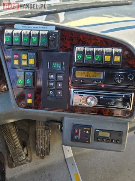 Wyposażenie: fotele odchylane, oświetlenie indywidualne, nawiewy dyszowe, ABS, ASR, retarder, klimatyzacja, radio, centralny zamek, podwójne szyby boczne, elektryczne lusterka, ogrzewanie stacjonarne
