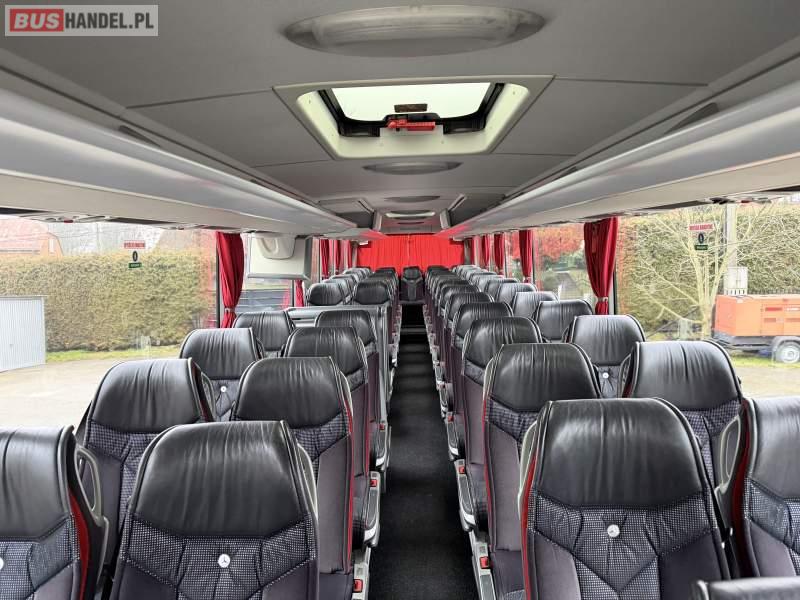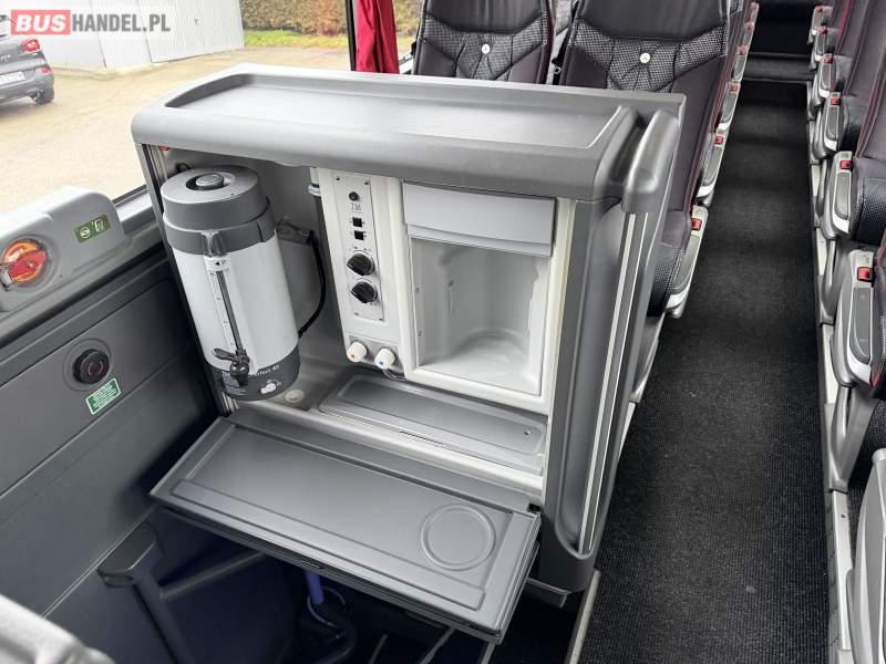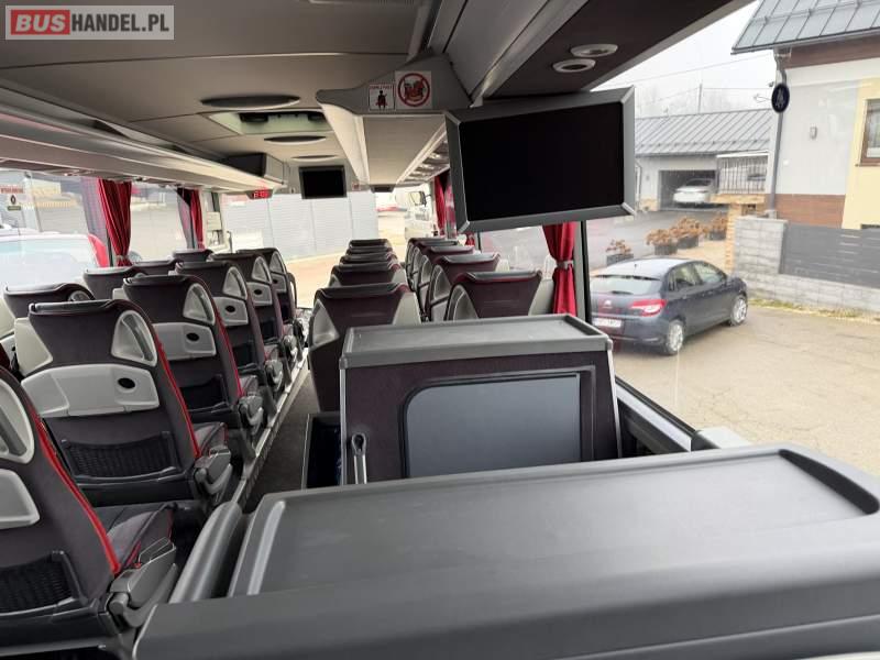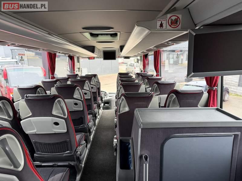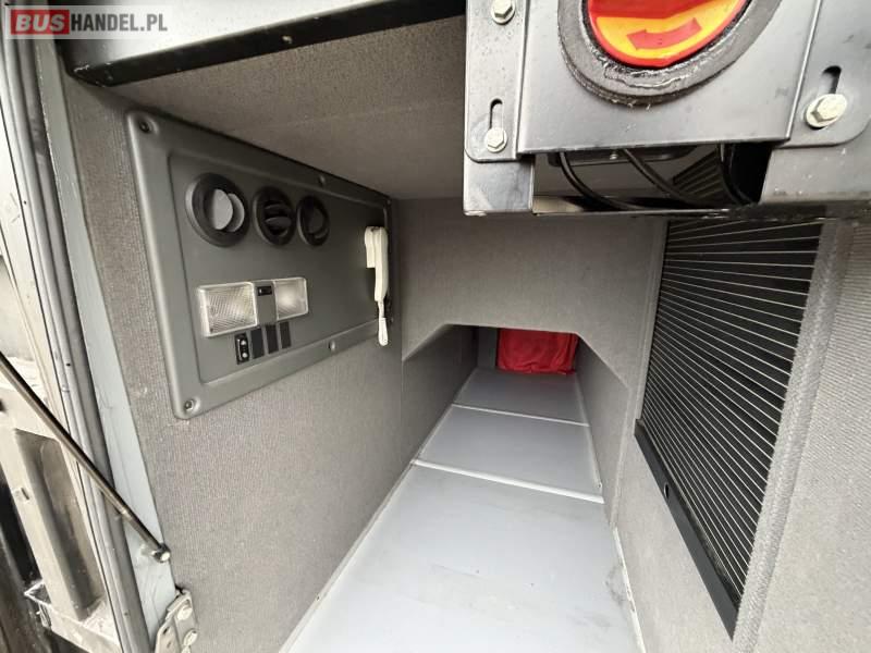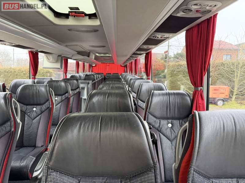 Wyposażenie: klimatyzacja, video, WC, lodówka, caffebar, kabina sypialna, oświetlenie indywidualne, nawiewy dyszowe, fotele odchylane, podnóżki, stoliczki, siateczki, ABS, ASR, tempomat, retarder, mikrofon, radio, fotele odchylane i rozsuwane, sejf, regulacja wysokości nadwozia, centralny zamek, podwójne szyby boczne, wspomaganie kierownicy, elektryczne lusterka, ogrzewanie stacjonarne, DVD, ESP